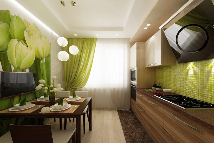 مع هذا الموضع ، يجب أن يكون الحد العلوي للمظلة عند مستوى 20-25 سم فوق ارتفاع المضيفة. ضع في اعتبارك أنه مع النمو الطبيعي ، تصبح الأرفف التي يزيد ارتفاعها عن 2.1 متر غير وظيفية. هذا الخيار غير مريح بسبب ارتفاع الأسقف في العديد من الشقق ، وسيكون من الصعب الحصول على أشياء من هذا المستوى. لم يتم تثبيت الخزانات التي تقل عن مستوى 155 سم ، وإلا فقد الكثير من المساحة: لن يكون من الممكن وضع أي أثاث أو كراسي أرضية هناك. عادة لا تسمح لقطات المطبخ بإهدار مساحة كهذه..