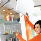 يمكن لخزائن المطبخ تخزين المواد الغذائية السائبة وأدوات المائدة الحادة ، والتي يجب أن تظل آمنة للأطفال الصغار. لهذا الغرض ، يتم استخدام آليات القفل. الآلية عبارة عن قفل بلاستيكي قوي بشريط أو مزلاج مثبت بشريط على الوجهين على باب أو درج.