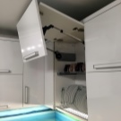 يمكن استخدام المصاعد الأكثر تقدمًا للواجهات العلوية المصنوعة من الألمنيوم واللوح المضغوط بدون مقابض في أثاث المطبخ عالي التقنية. هذه الآليات موثوقة وذات نعومة قابلة للتعديل ومصممة لمائة ألف دورة من فتح وإغلاق الأبواب خطوة بخطوة. تصبح إزالة العناصر من الأرفف عملية مريحة ، حيث يتم فتح الباب تلقائيًا عن طريق الضغط برفق على السطح بيدك. بعد ذلك ، يفتح الدافع الباب حتى النهاية.