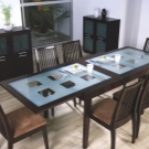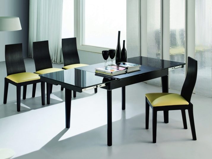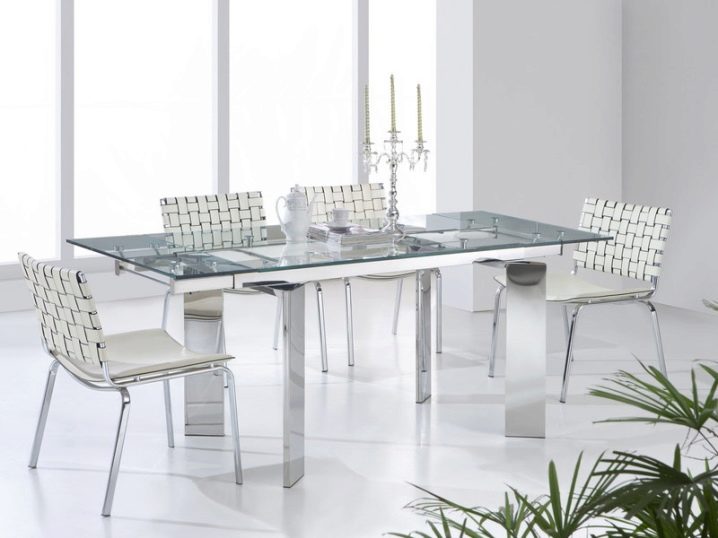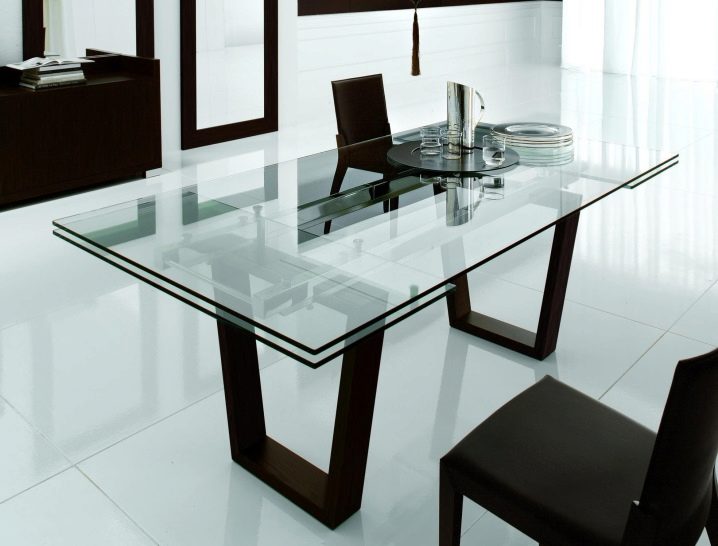 غالبًا ما تحتوي النماذج الزجاجية على عناصر إضافية على الجوانب تنزلق للخارج وتطيل الطاولة. الزجاج مادة متقلبة ومعقدة ، لذلك أصبح نظام الانزلاق الجانبي هو الطريقة الوحيدة لتوسيع مساحة الطاولة “الهشة”..