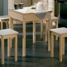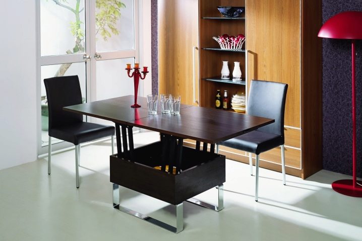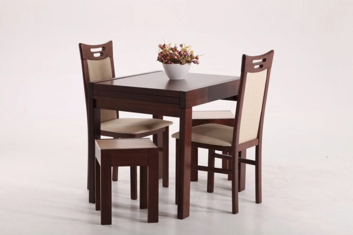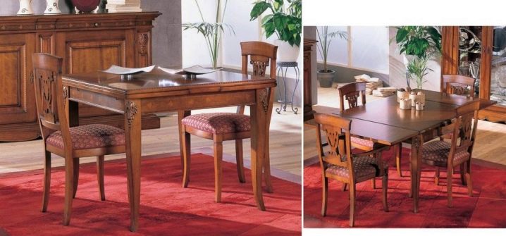 الطاولات الخشبية المربعة والمستطيلة هي الأكثر عملية بين البقية ، حيث تميل إلى زيادة مساحتها حتى 2.5 مرة.
