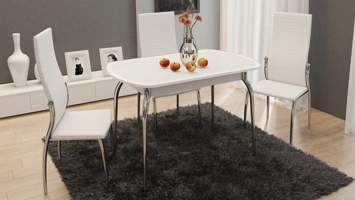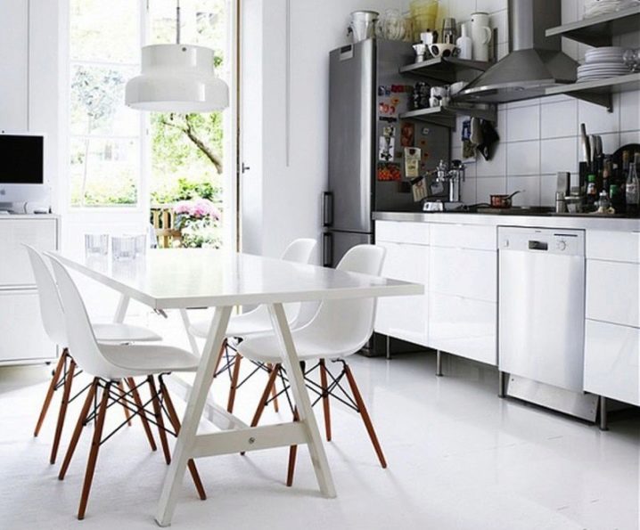 يبدو اللون الأبيض للمنتج في الداخل أنيقًا وعصريًا بشكل خاص ، واعتمادًا على شكل وتصميم الأثاث ، يمكن إنشاء تصميمات داخلية مذهلة. سيكمل النموذج الأبيض المستدير على ساق واحدة مطبخًا على طراز بروفانس أو أي نمط رومانسي أو ريفي آخر.