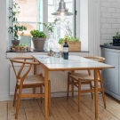 توجد حلول تصميم أصلية لأثاث المطبخ – بيضاوي صغير أو دائري لمطبخ أكبر ومستطيل أو مربع لمساحة أصغر.
