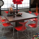 سيؤكد الأثاث الخفيف ذو الشكل المستطيل أو المربع على هندسة المساحة ، لذلك يجدر وضع الطاولة بشكل موازٍ تمامًا لأحد الجدران.