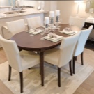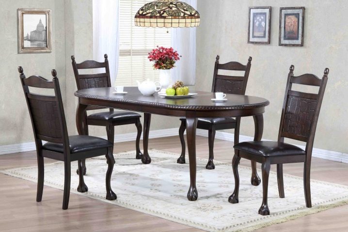 سيكون الشكل البيضاوي للطاولة مناسبًا للمطبخ الواسع ، لأنه يسمح لك بوضع عدد غير محدود من الضيوف من حولك ، بشروط. يحدد حجم قطعة الأثاث نفسها عدد الأشخاص الذين يجلسون ، على سبيل المثال ، سيتناسب 4-6-8 أشخاص خلف نموذج قياسي متوسط الحجم 80×120 سم.
