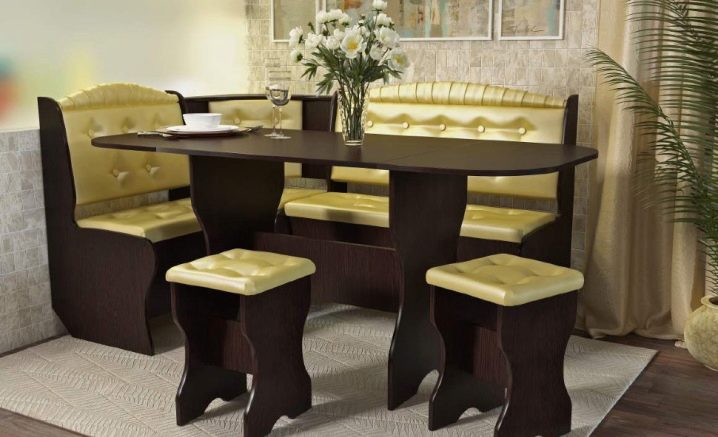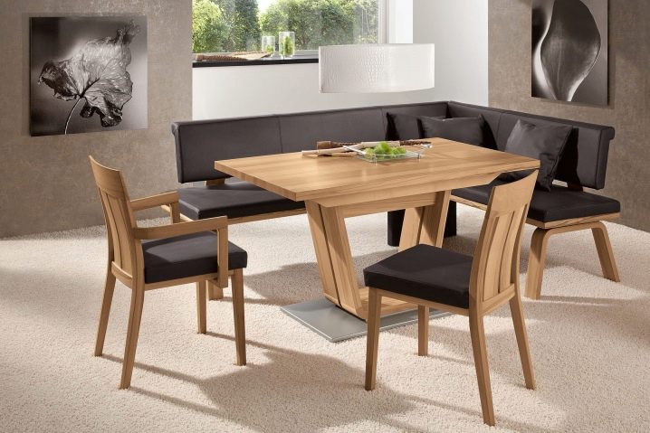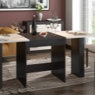 طاولة الزاوية بها آلية فتح الكتاب وتضم مقاعد إضافية. سيكون مثل هذا التصميم مناسبًا لعائلة كبيرة ، تذكر أن طاولة الكتب بها لوحان صغيران يقع أحدهما فوق الآخر ، وفي حالة فتح الطاولة ، يتم وضعهما بالتوازي مع بعضهما البعض.