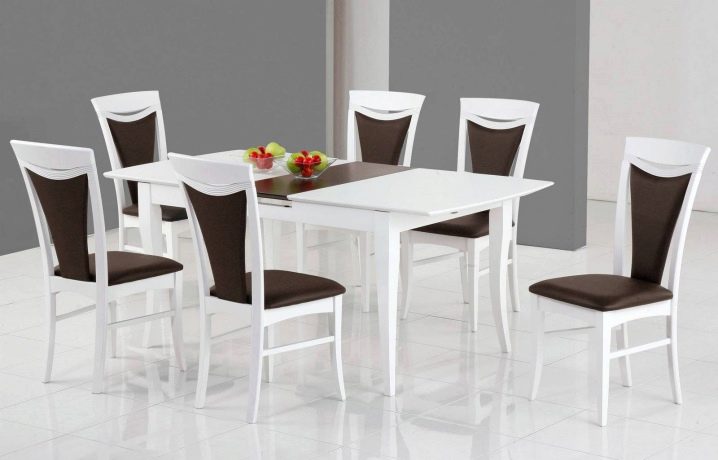 من الأفضل تثبيت طاولة صغيرة مربعة الشكل أقرب إلى الحائط لتوفير مساحة وخلق منطقة مريحة لتناول الطعام. اللمعان كجزء من النموذج الأبيض يجعل المقصورة باهظة الثمن ويجعلها أنيقة بشكل افتراضي ، ومع ذلك ، فإن العناية بالسطح المتقلب تصبح صعبة ومتطلبة.