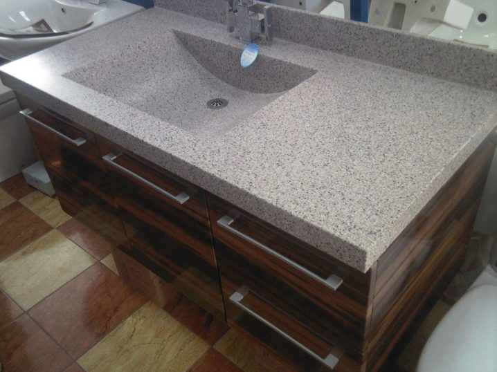 يتم الحصول على منتجات أقوى وأكثر متانة من الحجر. لتصنيع مثل هذه الركائز ، يمكن استخدام كل من الحجر الطبيعي وبديله الاصطناعي. من المثير للدهشة أن الأثاث المصنوع من الحجر الصناعي ذو جودة أعلى. لديها أفضل الخصائص الفيزيائية. ويبدو أفضل بكثير. العيب الوحيد هو أن حوامل الأرضية فقط مصنوعة من الحجر ، لأنها مادة ثقيلة للغاية.