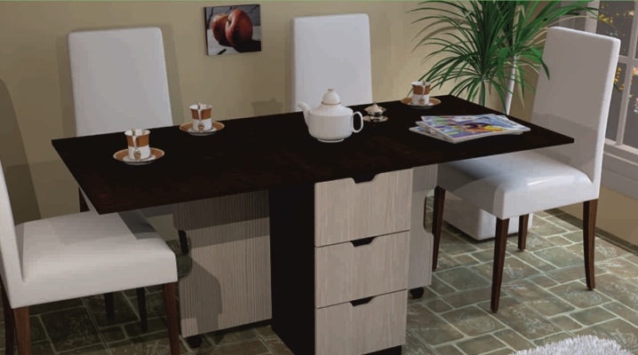 في مطبخ صغير ، ستكون الخزانة ذات العجلات مناسبة أيضًا. ميزته الرئيسية هي أنه يمكن تحريكه بحرية حول محيط الغرفة. لذلك ، إذا كنت بحاجة إلى فتح أريكة ، أو وضع الضيوف ، فإن المقعد القائم على عجلات سينتقل بسهولة إلى الجانب..