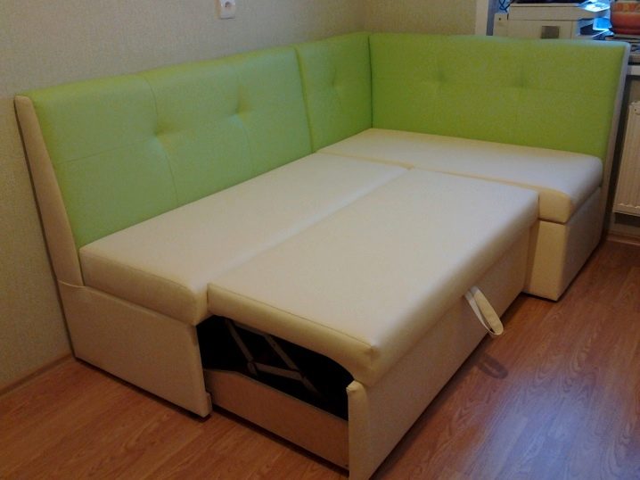 بشكل منفصل ، أود أن أقول عن أرائك الزاوية للمطبخ. إنها مثالية لأي غرفة بأي حجم على الإطلاق. هذا اختراع عملي جدًا للبشرية ، يتم وضعه في الزاوية ويحافظ على المساحة المحيطة به. حتى عند طيها ، يمكن أن تستوعب عددًا كبيرًا بما فيه الكفاية من الأشخاص ، وإذا تم توسيعها ، يصبح المقعد مكانًا للنوم ، وهو مجرد هبة من السماء في حالة وجود ضيوف غير متوقعين على عتبة الباب يتأخرون ويقيمون طوال الليل.