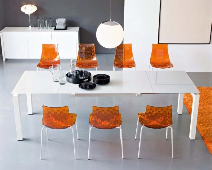 طاولات طعام بلاستيكية ذات مظهر علوي لامع أصلي ، الوزن الخفيف للهيكل يسمح لك بمزج الأثاث من غرفة إلى أخرى أو في مكان واحد ، وتغيير صورة المطبخ. ستتمثل مزايا النماذج البلاستيكية للمطبخ في تكلفتها المنخفضة ، ومجموعة متنوعة من الأشكال والظلال ، وسهولة الوزن والصيانة – يكفي مسح الطاولة بإسفنجة رطبة وعدم التفكير في كيفية إزالة الأوساخ الصعبة المعقدة..