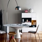 - كيف تختار شكل الطاولة؟ الشكل المستطيل أكثر شيوعًا ويسمح لك باستيعاب عدد الأشخاص من 4 خلف نموذج غير قابل للطي. ستكون الطاولة البيضاوية بديلاً ممتازًا للجدول الأول ، حيث لا تحتوي على زوايا حادة وتتيح لك وضع شخصين آخرين خلفها – في “الزوايا”.