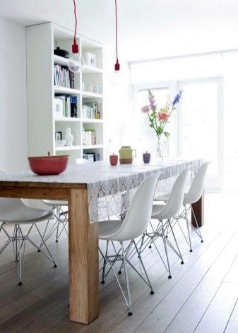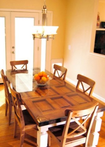 يمكنك أيضًا صنع طاولة طعام بيديك ، مسلحة بمشروع تصميم للأثاث المستقبلي بمعلمات دقيقة – سيسمح لك ذلك بشراء المواد والمكونات الضرورية. على الويب ، توجد رسومات أصلية للأثاث مع تعليمات مفصلة لقص العناصر وتجميع المنتج النهائي..