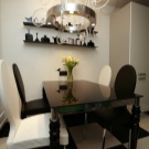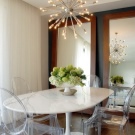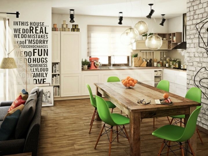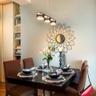 يعني تزيين طاولة يومية في شقة فسيحة حديثة تزيين منطقة تناول الطعام بشمعدان عملي أو مصباح. بالمناسبة ، لا ينصح بتعليق مرآة في منطقة تناول الطعام ، فمن الأفضل أن تقتصر على ديكور مختلف.