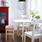 - تشغل المائدة المستديرة مساحة أكبر حتى على الرغم من حجمها الصغير ؛ لتوفير المساحة ، قم بتثبيته في زاوية غرفة الطعام ، وفي حالة غزو الضيوف ، ما عليك سوى نقله إلى وسط الغرفة والحصول على مقعدين آخرين مجانًا.
