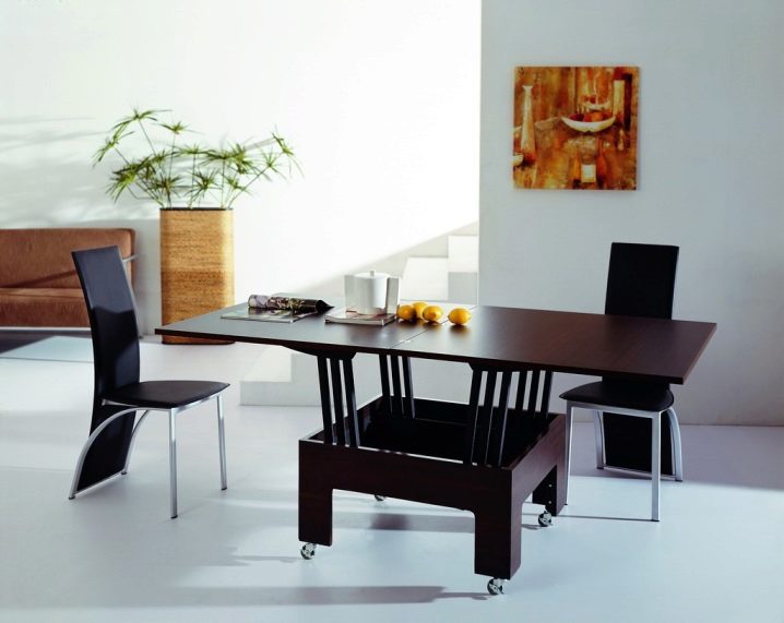 ستكون طاولة التحويل المربعة حلاً عمليًا لشقة صغيرة ويمكن استخدامها ليس فقط لتناول طعام الغداء ، ولكن أيضًا كخزانة جانبية في غرفة المعيشة أو غرفة النوم.