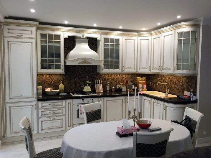 تعتبر النماذج الخشبية كلاسيكية بين البقية ولها بنية نبيلة ولون صلب طبيعي. أثاث من الخشب الصلب في الداخل بشكل متناغم كجزء من المطبخ الروسي الكلاسيكي أو المطبخ الإنجليزي الصارم مع أثاث ثقيل ومساحة واسعة للغرفة. سيكون البديل للمواد الثقيلة والمكلفة هو MDF أو اللوح – أسطح من الخشب المضغوط عالي الجودة.