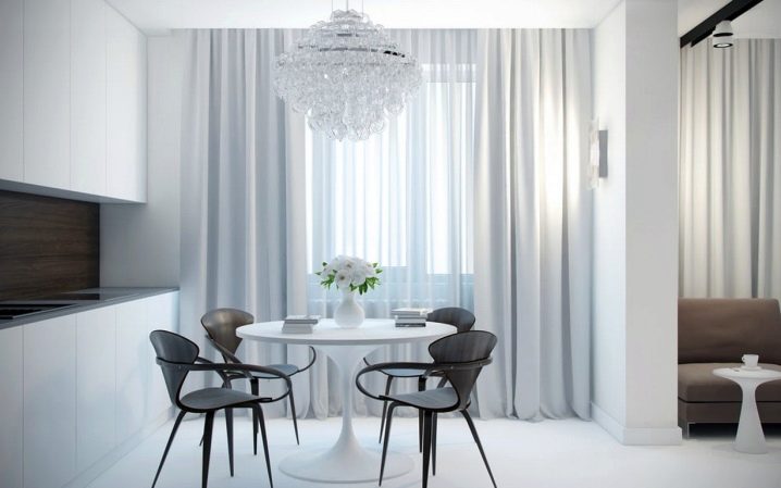 - بالنسبة للديكور الداخلي لمطبخ صغير متواضع وغرفة متوسطة الحجم (تصل إلى 10-12 مترًا مربعًا) ، يتم اختيار الطرز القابلة للطي بشكل تقليدي.