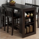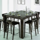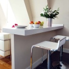 يمكن أيضًا أن يكون سطح الطاولة المرتفع ، المجهز بالقرب من الحائط ، مكانًا لتناول وجبة خفيفة. يمكن تثبيته على الحائط مثل الرف العادي أو ، لمزيد من الموثوقية ، يمكن تزويده بدعم إضافي على شكل ساق. تعتبر هذه الطاولة حلاً ممتازًا لمنزل شخص وحيد أو لزوجين شابين ديناميكيين يقضيان وقتًا قصيرًا في المنزل ، وتقتصر وجبتهما في الشقة على وجبة إفطار خفيفة أو شاي مسائي فقط..
