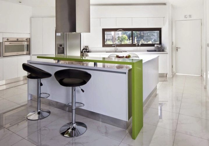هذا النوع من الأثاث منفصل عن كل شيء ويستخدم بشكل أساسي في المساحات الكبيرة. يمكن أن يكون هذا المطبخ ليس فقط في منطقة سكنية ، ولكن أيضًا في مطابخ المقاهي والمطاعم والمؤسسات العامة الأخرى. يمكن أيضًا أن يكون الجدول المرتفع من نوع الجزيرة متعدد الوظائف ويحتوي على مكان لتناول الطعام على جانب واحد ، ومن ناحية أخرى يمكن استخدامه كخزانة مطبخ..