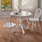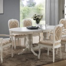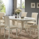 - تتناغم الكراسي الخشبية البيضاء ذات الظهر المرتفع والشكل المستقيم مع اتجاهات “بروفانس” و “كانتري” وغيرها من الاتجاهات الريفية في التصميم الداخلي. يتم الجمع بين البساطة والدقة لقياس شكل الكراسي مع أسطح طاولات مستديرة من نفس اللون والمواد ، في حين يمكن تنجيد مقعد الكرسي بنسيج ناعم وطبعة الأزهار.
