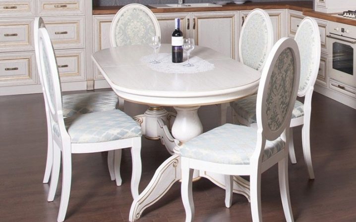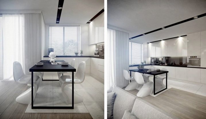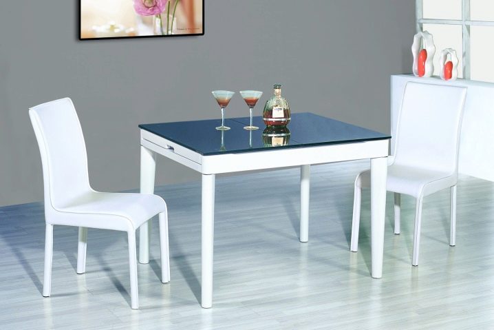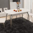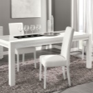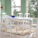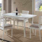 تكتمل نماذج الطاولات القابلة للطي بكراسي قابلة للطي في نفس الظل أو مقاعد بيضاء عادية. من المهم اختيار الكراسي البيضاء وفقًا لتصميم الأثاث ومن الأفضل أن يكون كلا العنصرين مصنوعين من نفس المادة..