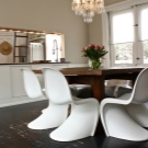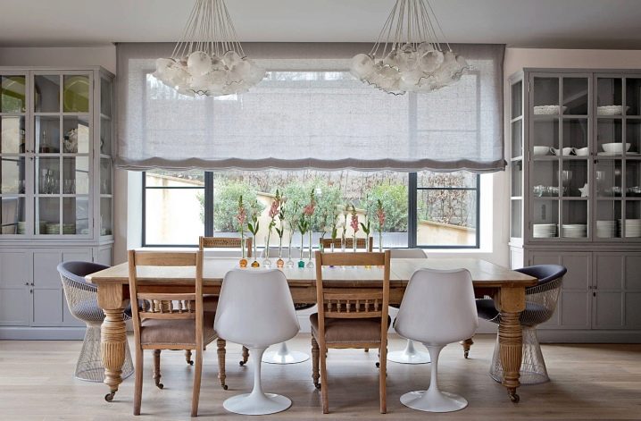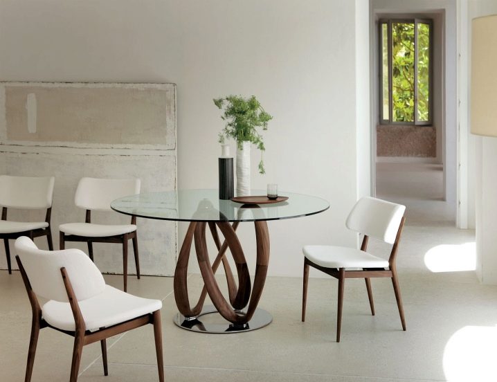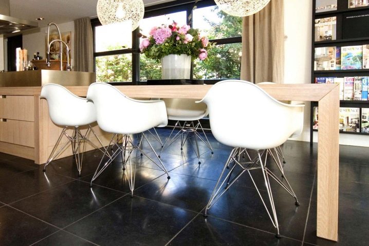 في الآونة الأخيرة ، اختار المصممون عناصر مختلفة كمواد للكراسي – الخشب والبلاستيك والقش. كل هذا يمكن أن يتناسب بسهولة مع الجزء الداخلي من غرفة واحدة مع طاولة طعام فسيحة مصنوعة من الخشب المصمت الخفيف ، والتي يمكن استكمالها بسهولة بمقاعد ذات ألوان متناسقة وقطع أثاث مختلفة اختلافًا جوهريًا 0 كراسي بلاستيكية بيضاء مستديرة.