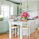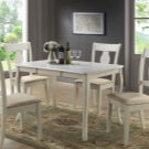 - عند اختيار العناصر ذات الألوان الفاتحة ، من المهم الانتباه إلى وظائفها: المقاعد الناعمة أو الظهر ، وعرض وعمق المقعد (40-45 سم يعتبر كلاسيكيًا) ، التكوين (مع أو بدون مقابض).