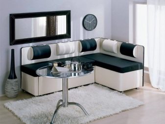 نادراً ما يتم تثبيت الأرائك الناعمة في مطابخ الشقق ؛ معظم الأسر لا تستطيع تحمل مثل هذه الرفاهية بسبب المساحة الصغيرة. لكن هذا لا ينطبق على مطابخ الاستوديو المدمجة. يمكن لمالكي هذا النوع من العقارات استخدام الأرائك الناعمة ، والتي ستكون مكانًا رائعًا للاسترخاء..
