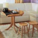معظم توفير المساحة. المقاعد صغيرة الحجم وسهلة الاختباء تحت الطاولة. هناك عيب واحد فقط – لن يكون من الممكن الاسترخاء والراحة على البراز ، فهي مناسبة لتناول وجبة سريعة ووجبة خفيفة.