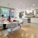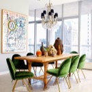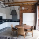 إذا كان حجم المطبخ مثيرًا للإعجاب ، فلن يفسد الأثاث المنجد من الداخل على الأقل ، ولكنه سيكمله فقط. ستصبح الأريكة الكبيرة والطاولة الخشبية الضخمة مكانًا يجتمع فيه جميع أفراد الأسرة كل يوم ، لمناقشة يوم المنتهية ولايته على العشاء..