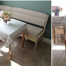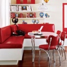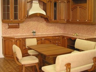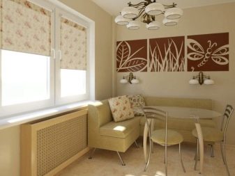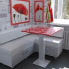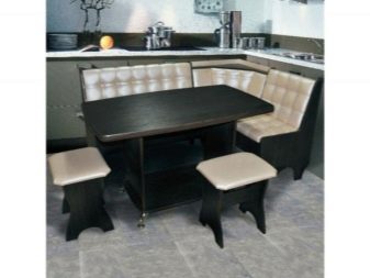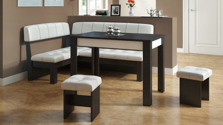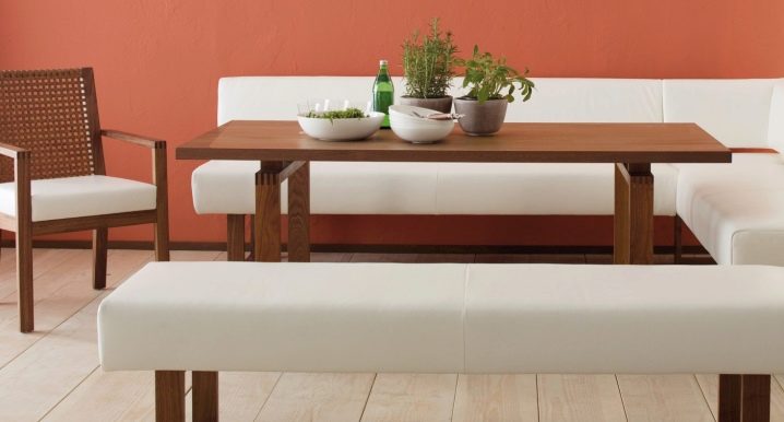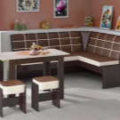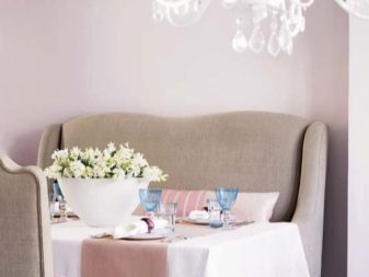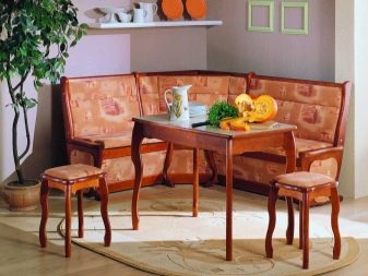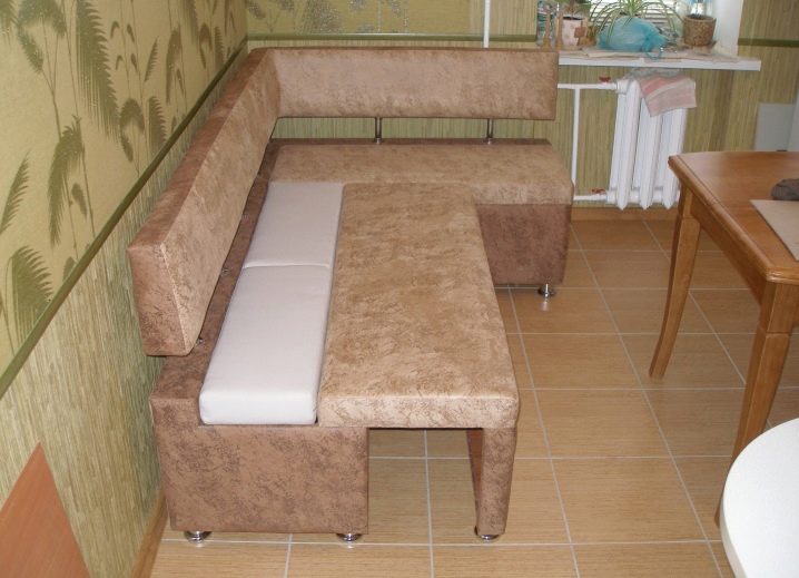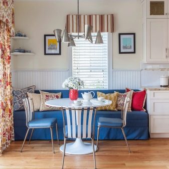 إذا لم يكن هناك مساحة إضافية في المطبخ ، فيمكنك استخدام مقاعد ناعمة مدمجة. سيكون الظهر جدارًا أو دعامة عصامية. عند اختيار المقاعد الناعمة ، يجب أن تأخذ في الاعتبار عرض وطول المقاعد بحيث “تناسب” قطعة الأثاث هذه حتى في أصغر مطبخ صغير.