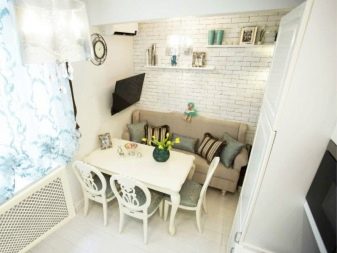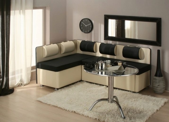 صورة نمطية تشير إلى أن مكان الأثاث المنجد فقط في القاعة أو غرف الاستراحة الأخرى يتراجع تدريجياً في الخلفية. يمكن أن يكون المطبخ أيضًا مكانًا رائعًا لقضاء وقت ممتع ، حتى لو كان صغيرًا. بالإضافة إلى ذلك ، تفترض الحقائق الحديثة للحياة وجود جهاز تلفزيون في هذه الغرفة ، لذلك ستكون الأريكة الكاملة أو الأريكة في المطبخ مفيدة للغاية..