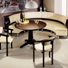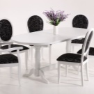 معظم توفير المساحة. المقاعد صغيرة الحجم وسهلة الاختباء تحت الطاولة. هناك عيب واحد فقط – لن يكون من الممكن الاسترخاء والراحة على البراز ، فهي مناسبة لتناول وجبة سريعة ووجبة خفيفة.