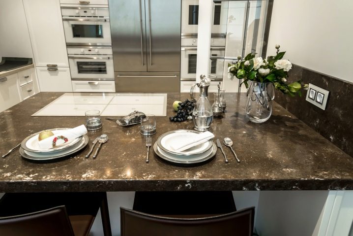 - على الأسطح المصنوعة من الحجر ، تحتاج إلى وضع الأطباق بعناية. هذا يرجع إلى حقيقة أن الجداول صعبة للغاية مقارنة بالخيارات الأخرى..