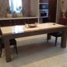 - عند الاختيار ، تحتاج إلى التركيز على نمط مجموعة المطبخ. لا تبدو الطاولات الحجرية مناسبة جدًا على خلفية أثاث اللوح.