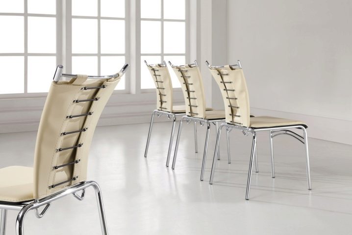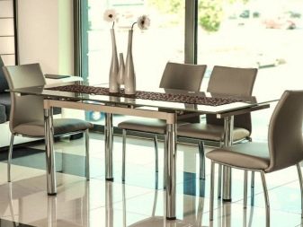 من بين مجموعة واسعة من الطرز ، يمكن التمييز بين نوعين رئيسيين: الكراسي الناعمة والصلبة.. كل واحد منهم لديه عدد من المزايا. إنها تجذب الانتباه مع عمر خدمة طويل ، سهولة الصيانة ، متانة التنجيد ، المرونة. بالنسبة لمطبخك ، يمكنك اختيار كل من المنتجات الثابتة والمنتجات القابلة للطي والتكديس. هذا الأخير يجعل من الممكن تخزين الكراسي ليس فقط تحت طاولة الطعام ، ولكن أيضًا على لوجيا ، في المخزن ، في إحدى الخزانات..