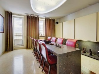 هل ترغب في الحصول على الراحة التي طال انتظارها في جدران منزلك ، فضلاً عن صلابة واحترام الداخل؟ ثم انتبه إلى مجموعات الأثاث التي تحتوي على عناصر من الجلد أو الجلد البيئي. لا يمكن أن تكون أرائك وكراسي بذراعين ووسائد فحسب ، بل أيضًا كراسي جلدية للمطبخ. ستصبح لهجة احتفالية وأنيقة حقيقية تخلق جوًا متوازنًا. يتم شراء هذا الأثاث من قبل أشخاص ناجحين وواثقين من أنفسهم..