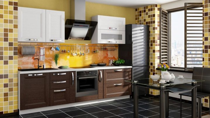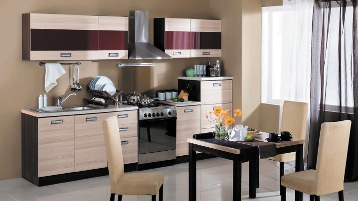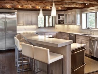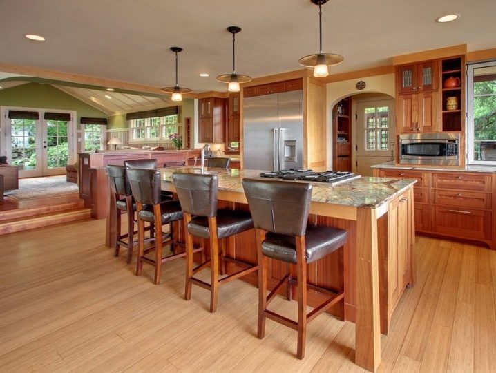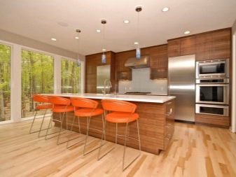يتم دمج الجلد تمامًا مع الخشب والمعدن و MDF وإطار اللوح وكذلك أرجل الكروم أو الصلب. ولكن مع الزجاج والبلاستيك ، لن تبدو المفروشات الصلبة متناغمة للغاية. يبدو الجلد رائعًا على طرازات الروطان ، مما يخلق جوًا من الرفاهية والراحة والدفء في المطابخ. قم بتضمين كراسي خوص مرنة مع مقاعد من الجلد البيئي في مجموعة الطعامو. يبدو من المألوف اليوم هو نوع من “التكامل” بين التفاصيل المعدنية المتطورة والكلاسيكية مع لمسة من الطبقة الأرستقراطية.