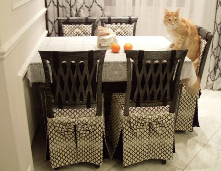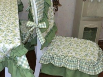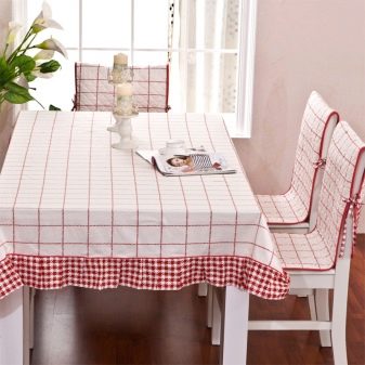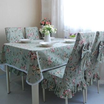 بفضل تنوع المواد المستخدمة ، فضلاً عن سهولة استخدام الأغطية ، يمكنك تجربة التصميم الداخلي. للحصول على مزيج أكثر تناسقًا ، من الأفضل اختيار أغطية كراسي المطبخ ومفارش مائدة الطعام من نفس المجموعة. إذا كانت لديك مهارات الخياطة ورغبة كبيرة ، فيمكنك دائمًا صنعها بنفسك باستخدام نفس المادة.