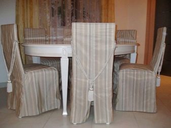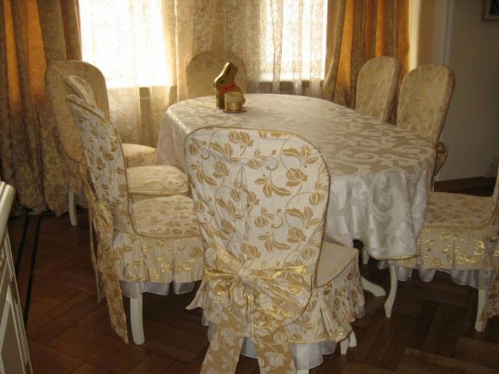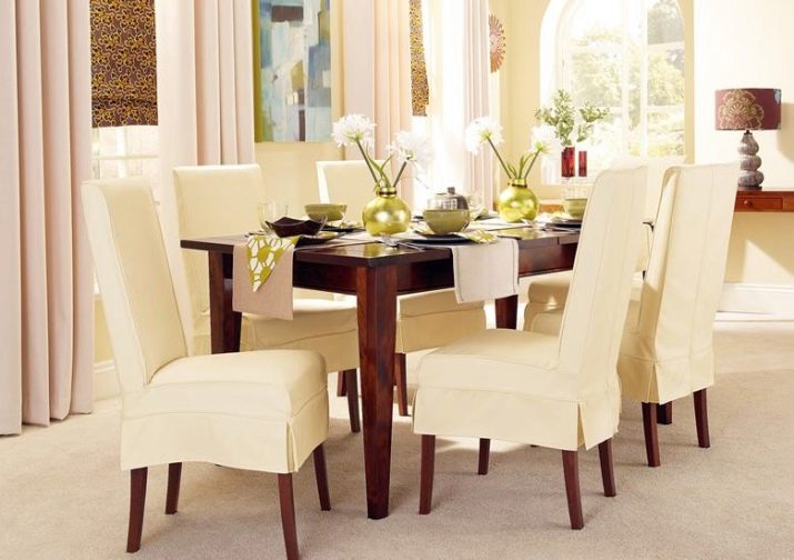يجدر الانتباه إلى الكراسي. في البداية ، قد يبدو أن هذا الجزء من الداخل لا يبرز عمليًا ، لكن هذا في الحقيقة بعيد عن الواقع. على سبيل المثال ، يمكن لشيء صغير مثل أغطية الكرسي أن يغير مظهر الغرفة بشكل جذري. يبقى فقط لاتخاذ القرار الصحيح.