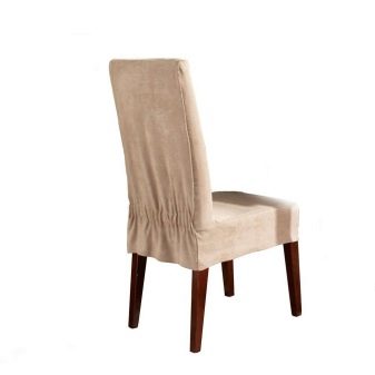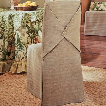 - نسخة عالمية من الغلاف. عادة ما يكون هذا هو رداء فضفاض أو غطاء وسادة يمكن تثبيته في الجزء الخلفي من الكرسي. ميزتها هي القدرة على ضبط العرض. هذه الأغطية مخصصة للكراسي بدون مساند للذراعين. هناك أيضًا خيارات للمقاعد البسيطة بدون ظهر. في هذه الحالة ، يكون الغطاء مصنوعًا بشكل دائري ويتم تثبيته على المقعد بشريط مطاطي ، أو يحتوي على أربطة خاصة يمكن تثبيتها على أرجل الكرسي ؛