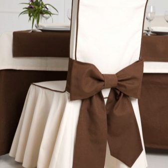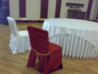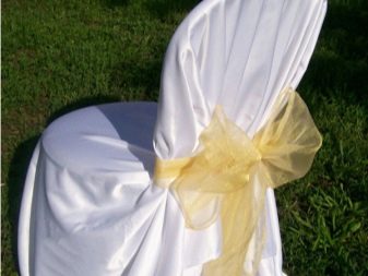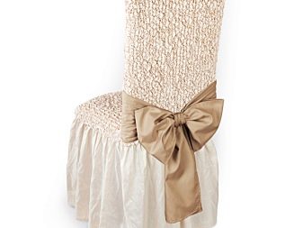 - أغطية فاخرة. ميزتها المميزة هي حل تصميم غير عادي حقًا ، والذي يتم إنشاؤه بشكل أساسي من خلال استخدام الأقمشة والمواد باهظة الثمن. غالبًا ما يتم تزيين مثل هذه الحالات بالأقواس والأنماط وشرائط الساتان وحتى الزهور الاصطناعية. السمة المميزة أيضًا هي وفرة الكشكشة ، والتي يمكن سحبها إلى الأرض وتغطية الكرسي بالكامل. تبدو الحالات الفاخرة دائمًا رشيقة ومثيرة للإعجاب ؛