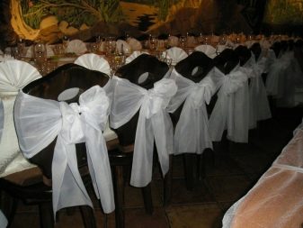 حتى عند شراء حقيبة عالمية ، يمكنك تزيينها بنفسك. لهذا الغرض ، يتم استخدام دبابيس وشرائط وأقواس مختلفة. خيارات الديكور هذه مناسبة بشكل خاص لقضاء العطلات. ومع ذلك ، لا ينصح المصممون بتزيين الحرملة بالعديد من العناصر. لن يؤدي هذا إلى زيادة الحمل على التصميم فحسب ، بل يمكن أن يؤدي إلى زيادة الوزن ، مما يتسبب في انزلاق الغطاء من الخلف ، أو أن الكرسي نفسه سيبدأ في التمايل إلى الخلف..