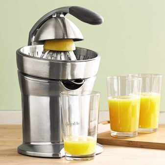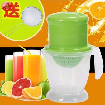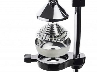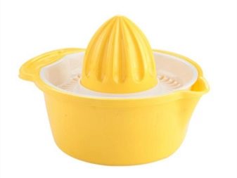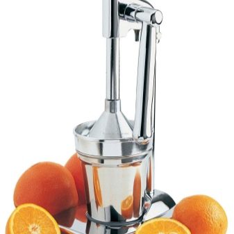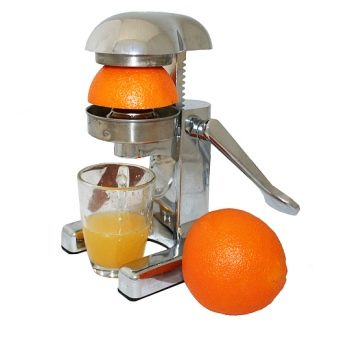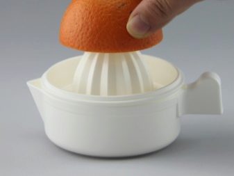تقنية أبسط هي عصارة الحمضيات اليدوية. هذه آلة بسيطة تتكون من شق ومكبس. بالضغط عليه ، يمكنك عصر العصير وإخراجها من خلال فتحة خاصة في الوعاء..