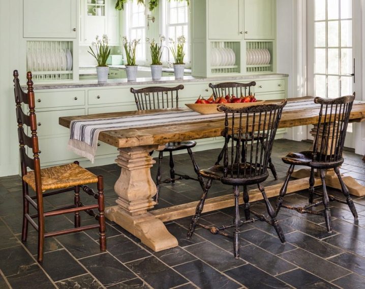 اختيار طاولات الطعام والكراسي للمطبخ واسع بما فيه الكفاية. هناك ألوان وأشكال وأحجام مختلفة. بالنسبة للمطبخ الصغير ، فإن خيارات تحويل الطاولات ممكنة ، والتي يمكن أن توفر مساحة..