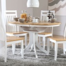 ستضيف المائدة المستديرة الراحة إلى مطبخك. يتم دمجه مع أنماط مختلفة في الداخل ، مما يعطي خفة وليس به زوايا حادة. يمكن أن تستوعب بسهولة أكثر من أربعة أشخاص دون دفعها إلى ركن الطاولة. من الخطأ وضعها في زاوية المطبخ ، لأن كل المساحة المفيدة للطاولة لن تستخدم بهذه الطريقة ويمكن أن يتسع لـ 3 أشخاص كحد أقصى خلفها. ومع ذلك ، لن تكون هذه الطاولة حلاً جيدًا لمطبخ صغير ، لأنه سيتعين نقلها باستمرار من مكان إلى آخر أو تجاوزها..