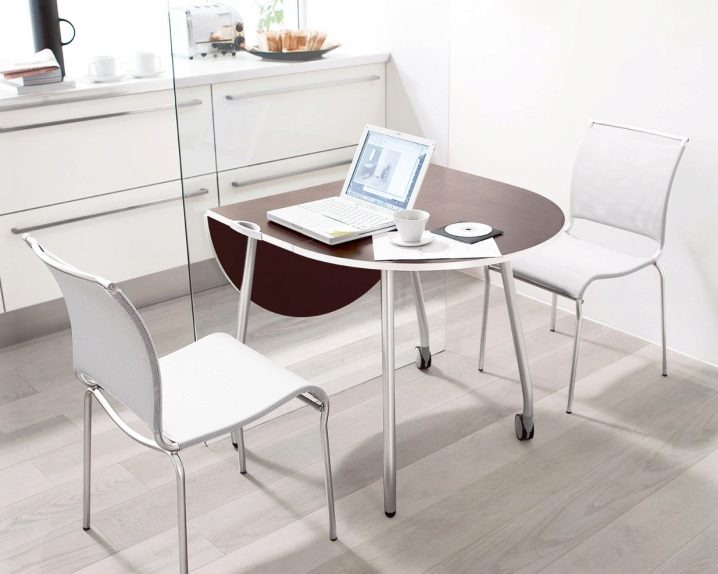 طاولة قابلة للطي تحل مشاكل مساحة تناول الطعام حتى في أصغر المساحات. يفترض هذا النموذج أن جزءًا من المنتج مُثبت في الحائط ، بينما يمكن توسيع الجزء الآخر إذا لزم الأمر وله أرجل مداد. يمكن أن تستوعب ما يصل إلى ثلاثة أشخاص بحرية. هناك أيضًا أشكال مربعة ونصف دائرية ومستطيلة..