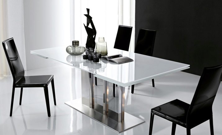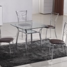 تحتوي أسطح العمل الزجاجية على الكثير من الاختلافات اللونية. يمكن أن تكون شفافة ، ومرآة ، وأبيض غير لامع ، وملونة ، مع طباعة الصور. يمكن دمجه مع كراسي من الكروم أو البلاستيك. عند الاختيار ، انتبه بشكل خاص لسمك سطح الطاولة – يجب ألا يقل عن 10 مم.