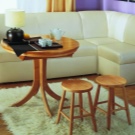 أما بالنسبة للجدول ، فيجب أن يكون عمليًا أيضًا. لن تعمل طاولة كلاسيكية بيضاوية أو مستطيلة هنا ، اختر خيارًا مع سطح طاولة يمكن طيه أو إزالته بسهولة. إنه أكثر وظيفية.